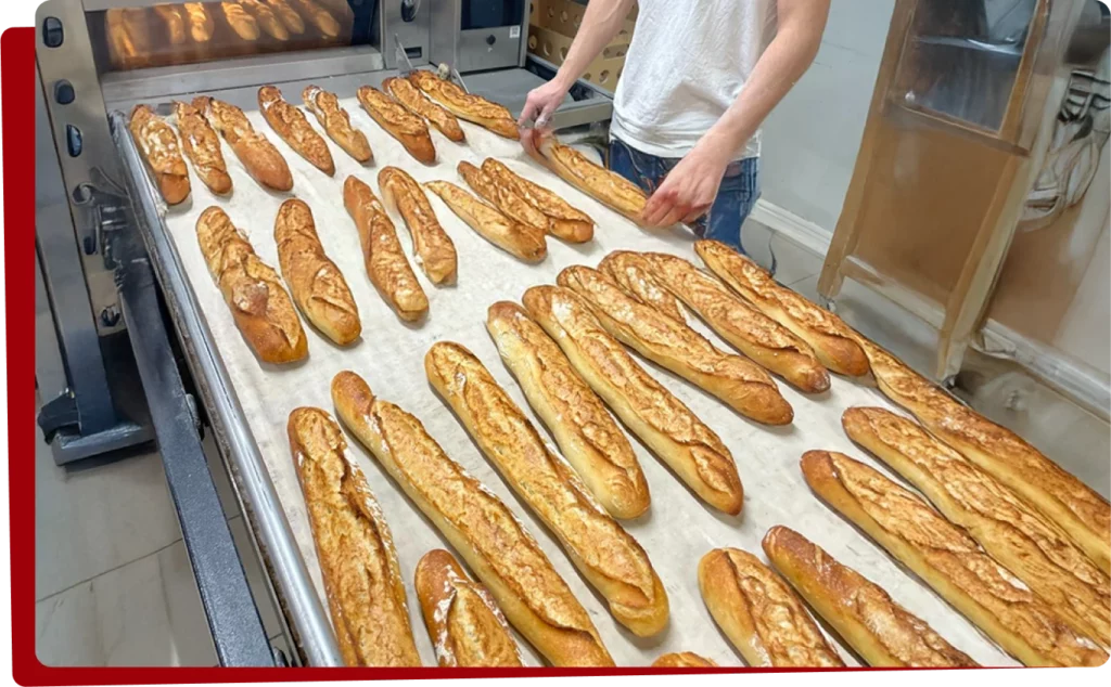 • Du procédé de fabrication, du pétrissage de la pâte à la fermentation, en passant par le façonnage, l’enfournement, la cuisson et le défournement,